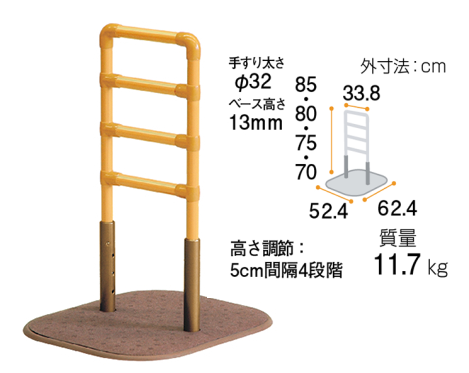 ◆置くだけで使える床置き型手すり